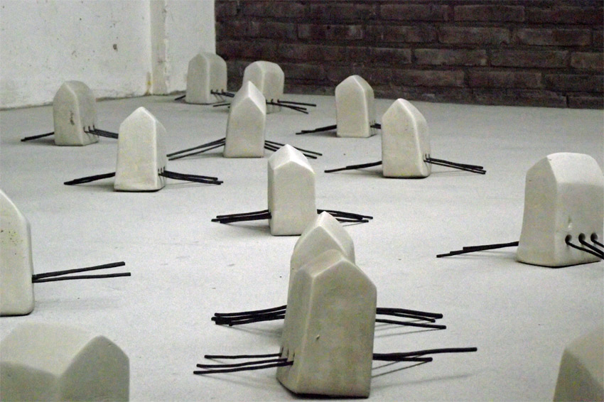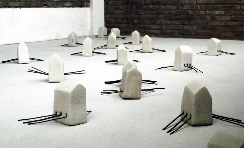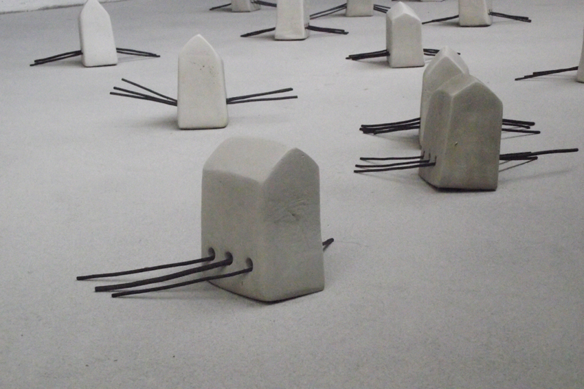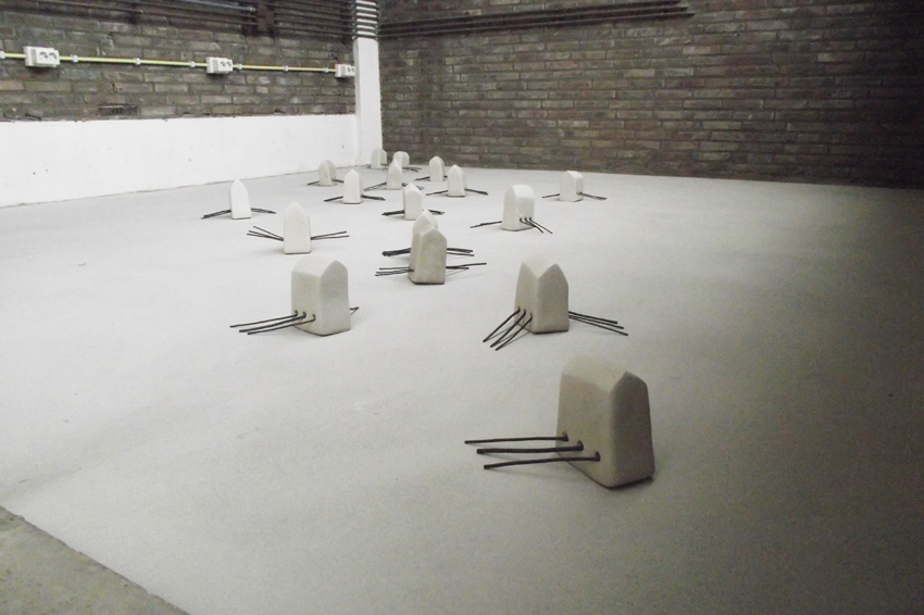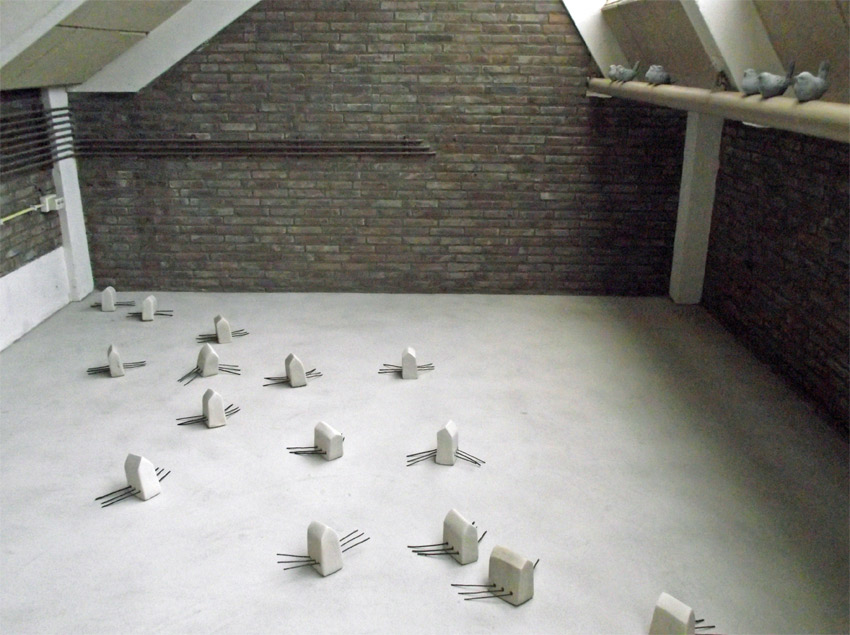 ‘Travel in convoy’ is de 3e installatie in de serie HINC (van hier naar daar): kwetsbaar, tijdelijk en tijdloos. De installatie is opgebouwd uit klei, cement, zand en houtskool. Deze installatie werd gerealiseerd in de voormalige MTS in Hengelo als onderdeel van het kunstproject ‘Habitat’, beeldende visies van internationale kunstenaars, van MIKC Delden.