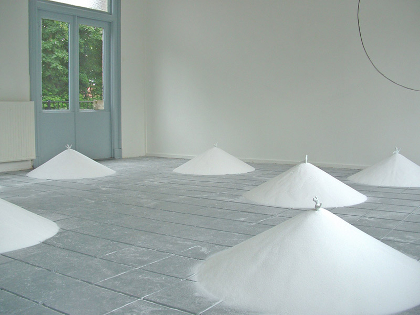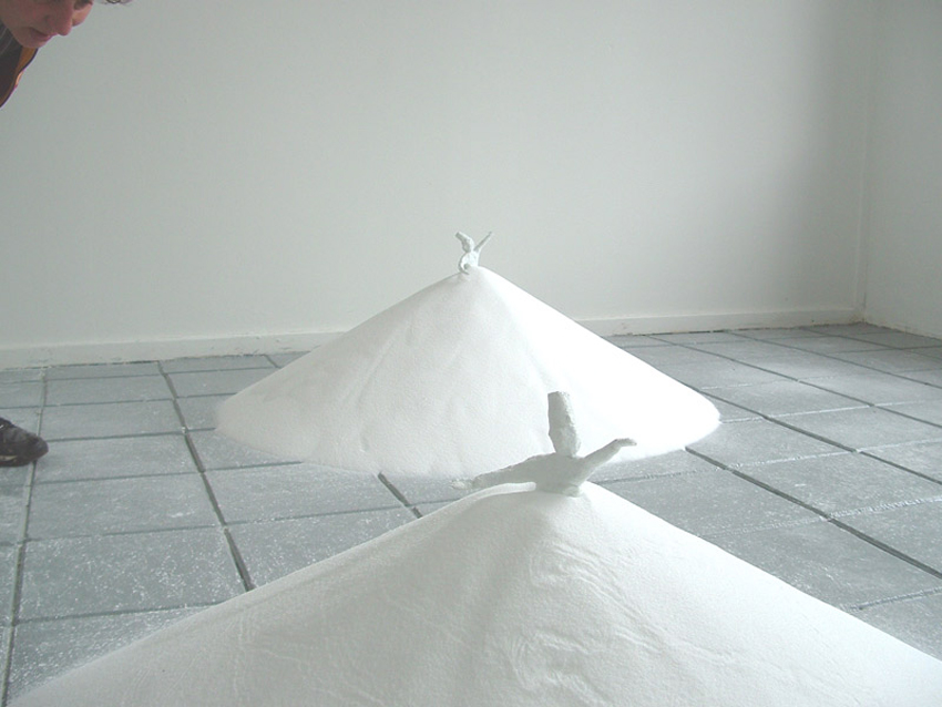 Een installatie in het voormalig station van Delden, op uitnodiging van MIKC. Een associatie op het begrip reizen: als een derwisj reist de mens door het leven, wervelend om zichzelf en tegelijkertijd de ander. De installatie is opgebouwd uit een ton zout, klei en krijt, gebruikmakend van een natuurlijk materiaal uit de bodem van dit gebied, Twente.