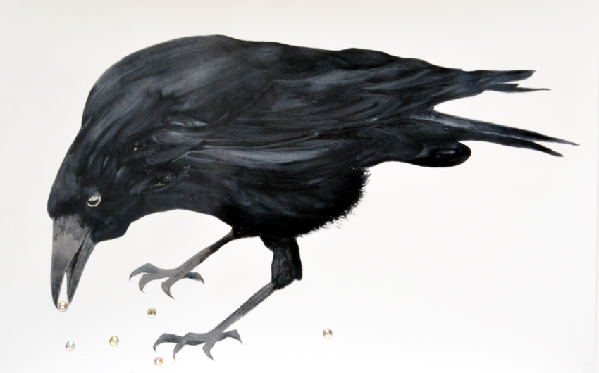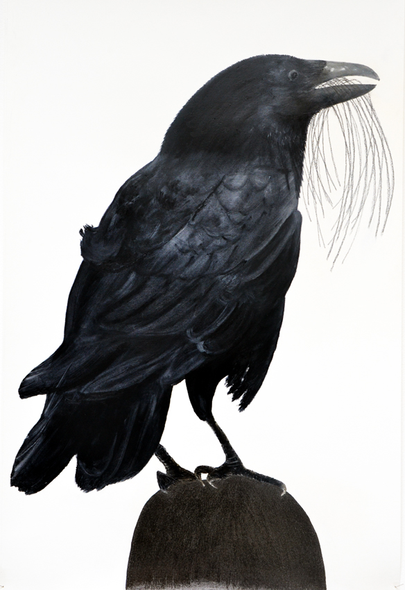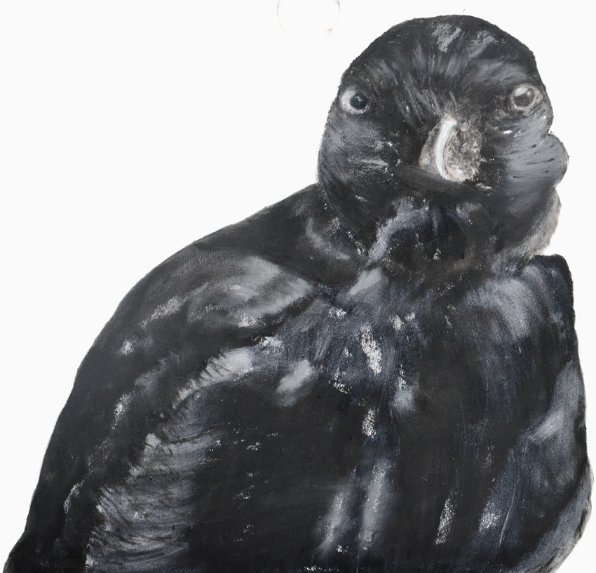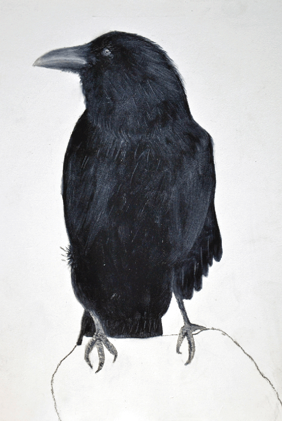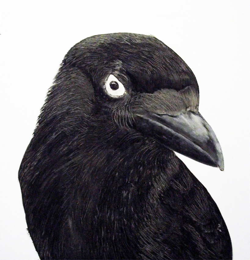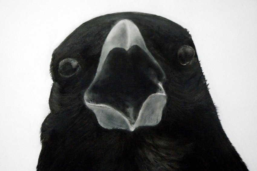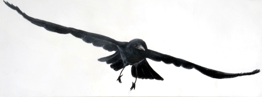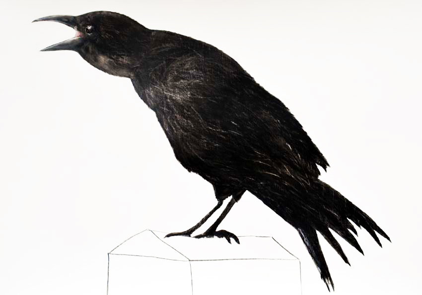 Associatief uitgangspunt voor deze installatie, in Filmhuis de Keizer, is de film ‘the Birds’ (1963) van Alfred Hitchcock geweest. Het was ver voor Jaws en andere films uit het genre ‘de natuur wreekt de mens’. Kraaien kunnen angst inboezemen. Waarom? Doordat ze zwart en groot zijn, krijsen, altijd in de nabijheid en aards zijn? Of door hun intelligentie , de scherpe observerende blik? Wat weten wij van hen en wat weten zij van ons?
