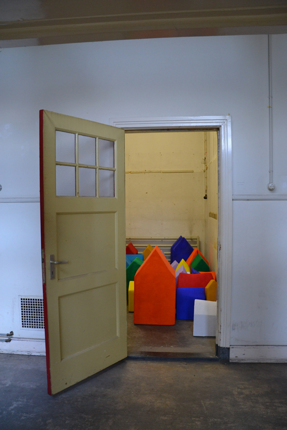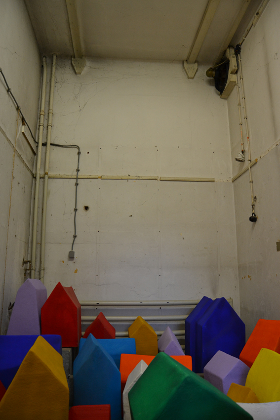 Left place’: in opslag staan hier de beelden die lang geleden gebruikt zijn voor een installatie. Rollecate als gebouw is letterlijk en figuurlijk verlaten, opgegeven door de kunstenaars.